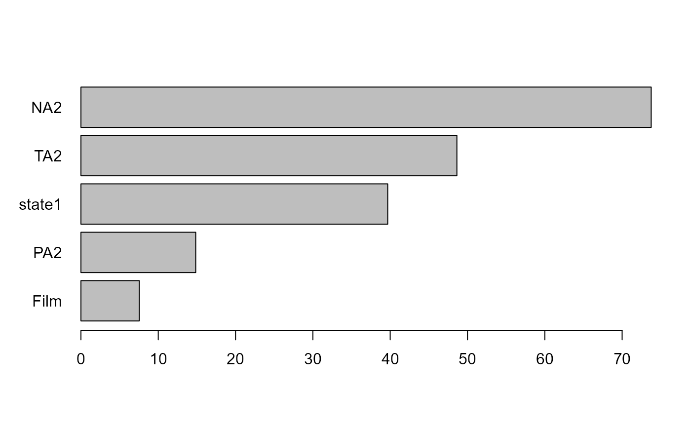 This example demonstrates how SEM forests can be grown. SEM forests are ensembles of typically hundreds to thousands of SEM trees. Using permutation-based variable importance estimates, we can aggregate the importance of each predictor for improving model fit.