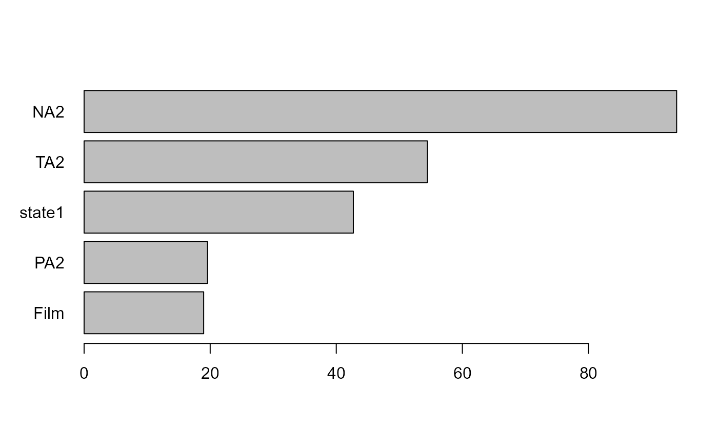 knitr::kable(head(affect))| Film | ext | neur | imp | soc | lie | traitanx | state1 | EA1 | TA1 | PA1 | NA1 | EA2 | TA2 | PA2 | NA2 | state2 | MEQ | |